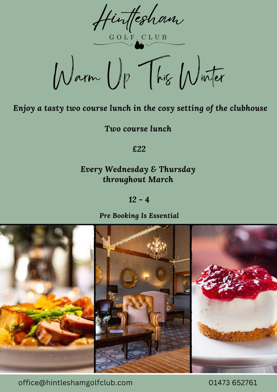 To book call our events team 01473 652761 or email office@hintleshamgolfclub.com